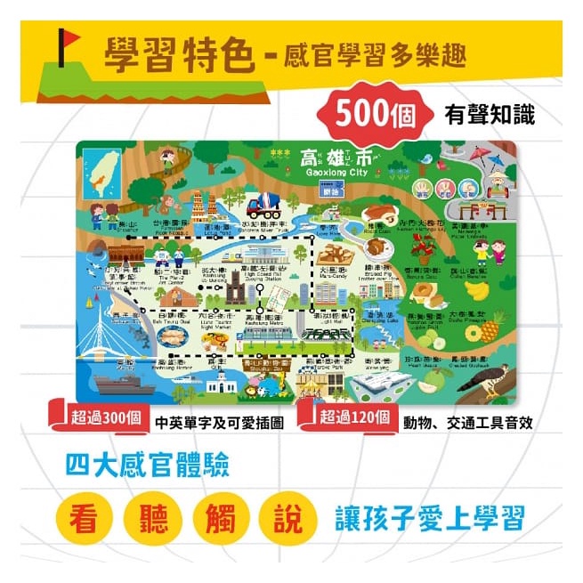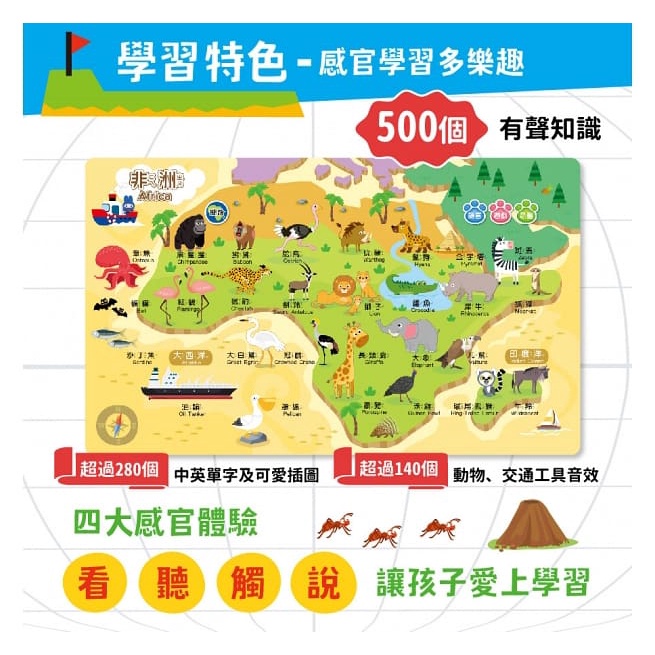 幼福-世界動物地圖小手點讀英文單字有聲書(中英雙語)/台灣城市地圖小手點讀知識百科有聲書(中英雙語)