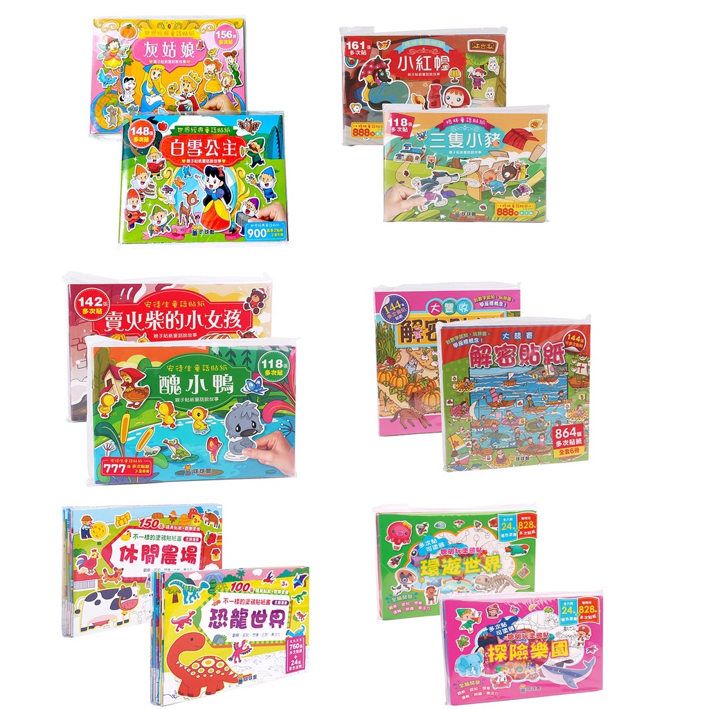 球球館 12書貼紙套書 聰明玩塗鴉貼 不一樣的塗鴉貼紙書 格林童話貼紙 安徒生童話貼紙 解密貼紙 世界經典童話貼紙