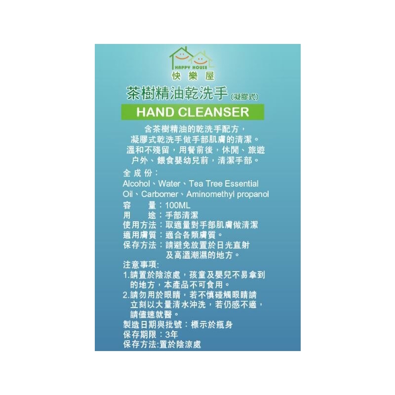 快樂屋-酒精乾洗手HAPPY HOUSE-茶樹精油乾洗手(凝露式)100ml/210ml 75%酒精乾洗手