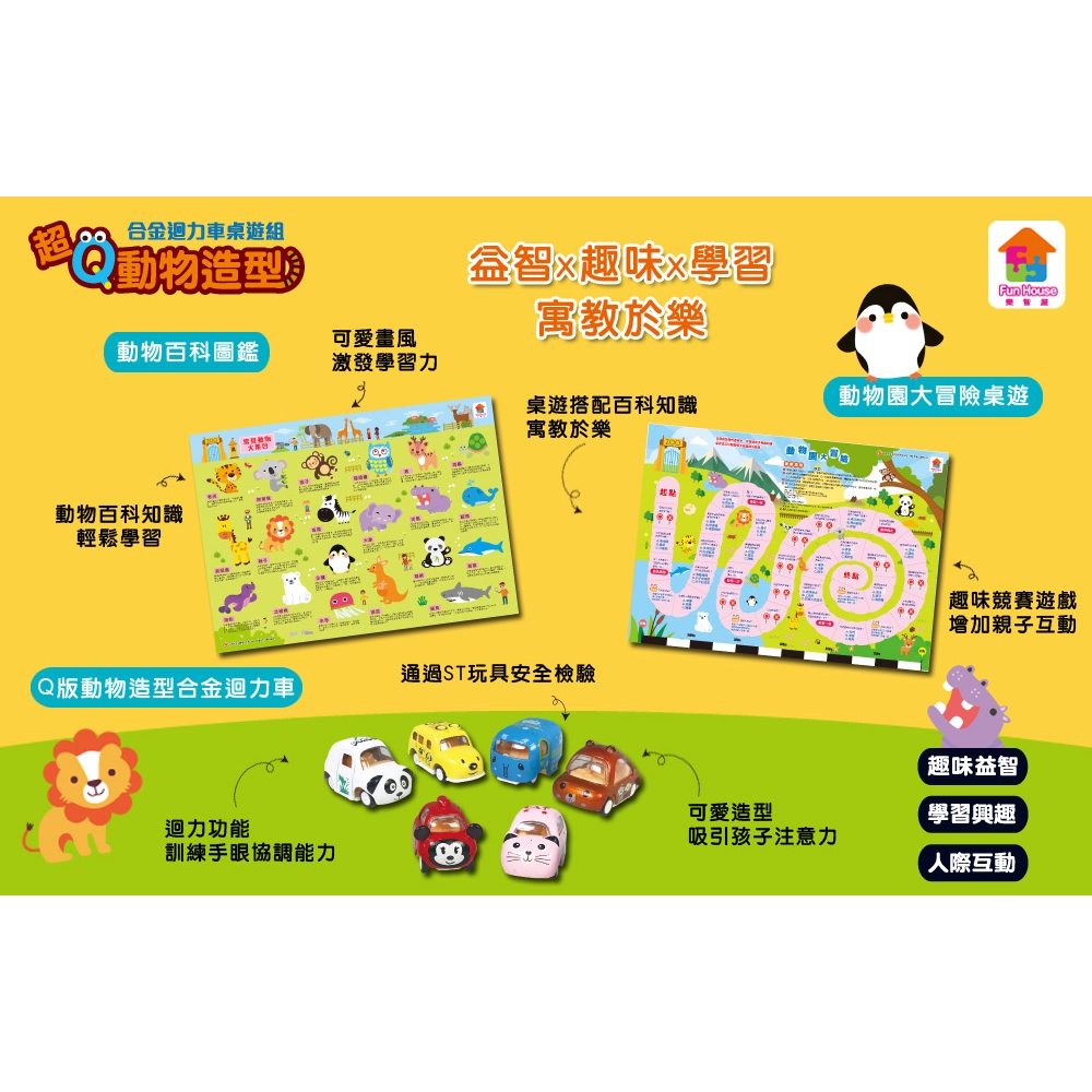 双美-超Q動物造型 合金迴力車桌遊組
