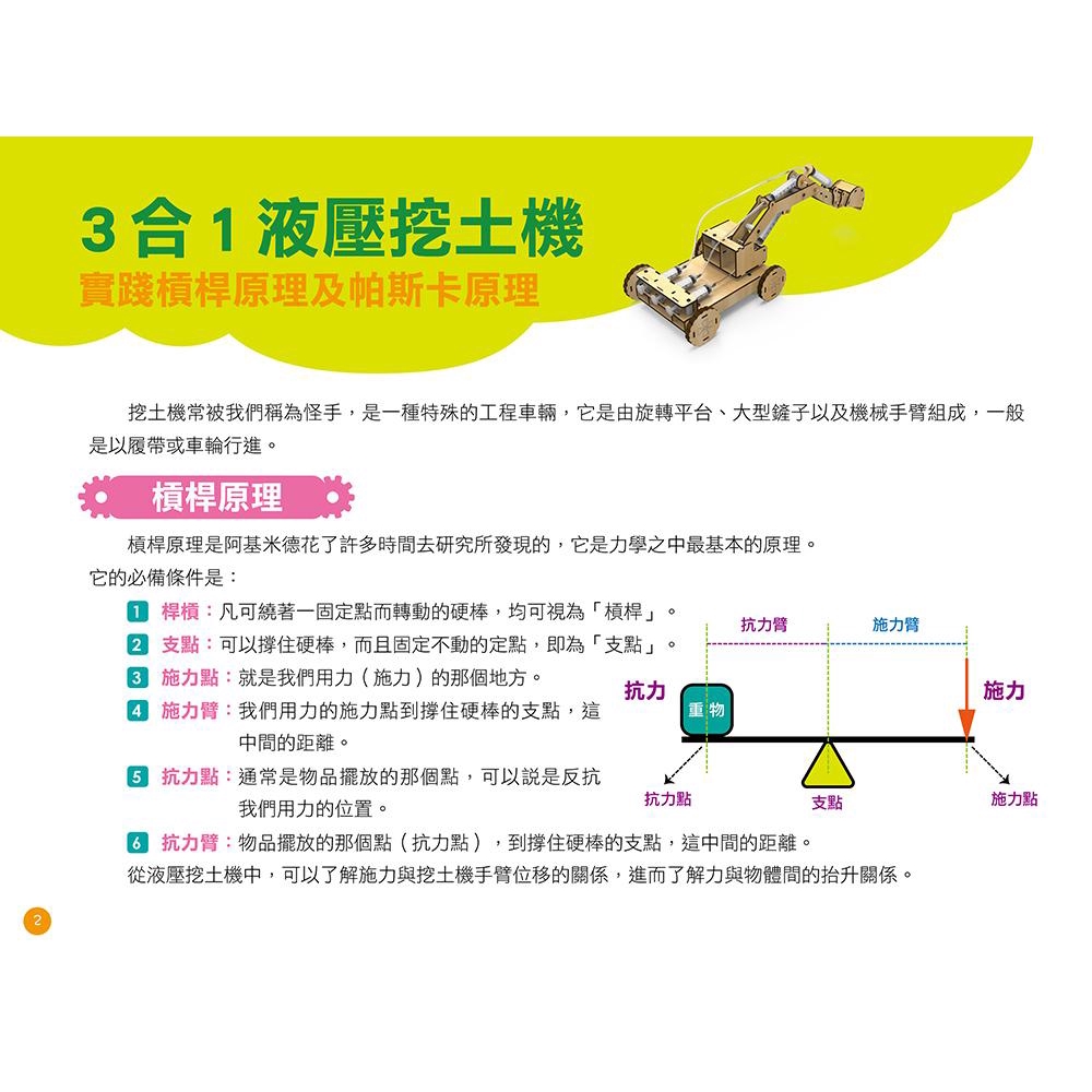 小創客的科學教育與實驗製作-(1)3合1液壓挖土機(2)四輪驅動車(3)雙翼滑行機