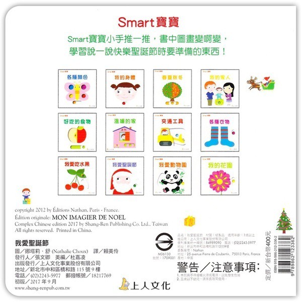 上人-Smart寶寶 遊戲書 我愛聖誕節 我的家人 春夏秋冬 各種顏色 各種衣物 好吃的食物 交通工具 溫暖的家