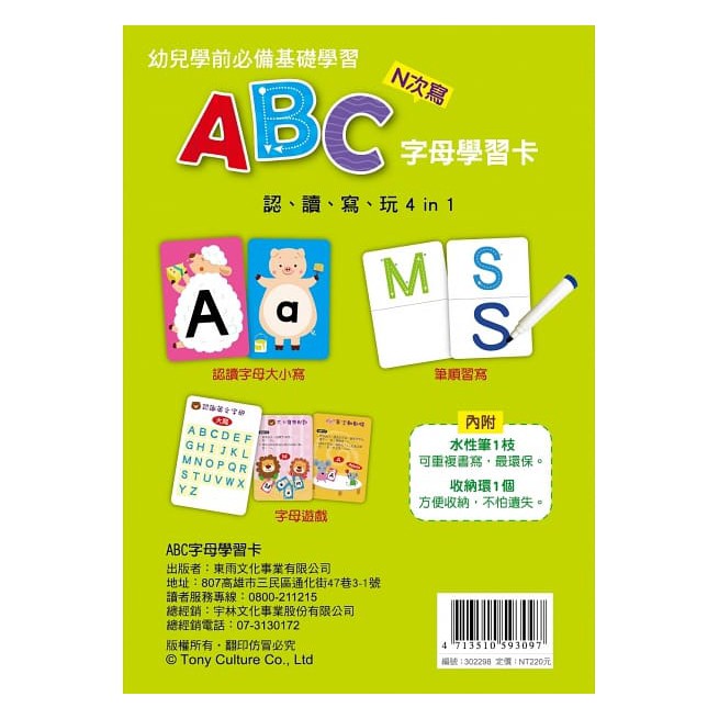 東雨-兒童益智教具—N次寫:123數字學習卡4in1/ABC字母學習卡4in1