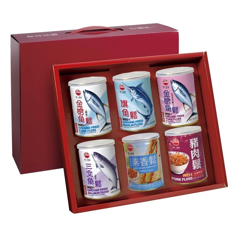 如意禮盒(鮪魚鬆200g+旗魚鬆200g+海苔芝麻鮪魚鬆200g+鮭魚鬆200g+海苔素香鬆200g+豬肉鬆200g)