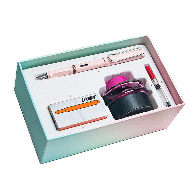LAMY Safari狩獵者鋼筆禮盒/ 2019限量馬卡龍櫻花粉/ 50ml墨水/ F
