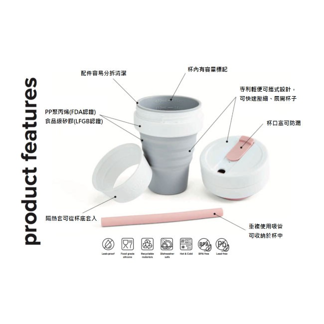 stojo 16oz摺疊吸攜杯/ 鴿子灰 誠品