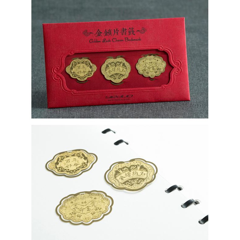 yeduo design金鎖片書籤三入裝/ 百年好合/金榜題名/富貴長命 eslite誠品