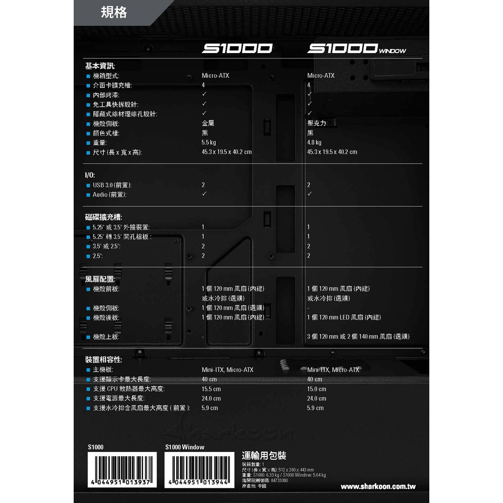 Sharkoon 旋剛 S1000 小暴風 金屬側板 文書機 風扇 MATX 光碟機 5.25” 電腦機殼