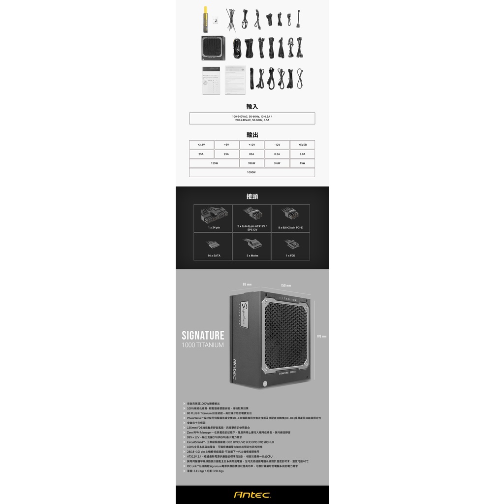 Antec 安鈦克 ST1000 Signature 海韻代工 電源供應器 鈦金 全模組 全日系 10年保 電源 FDB