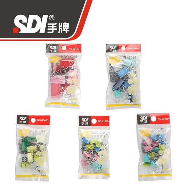SDI 手牌 13mm/15mm/19mm/25mm/32mm 彩色長尾夾 隨手包0244D~0248D【久大文具】