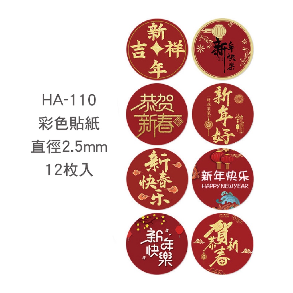 新年款 (現貨) NEW圓形貼紙(12枚) 龍年【久大文具】1404