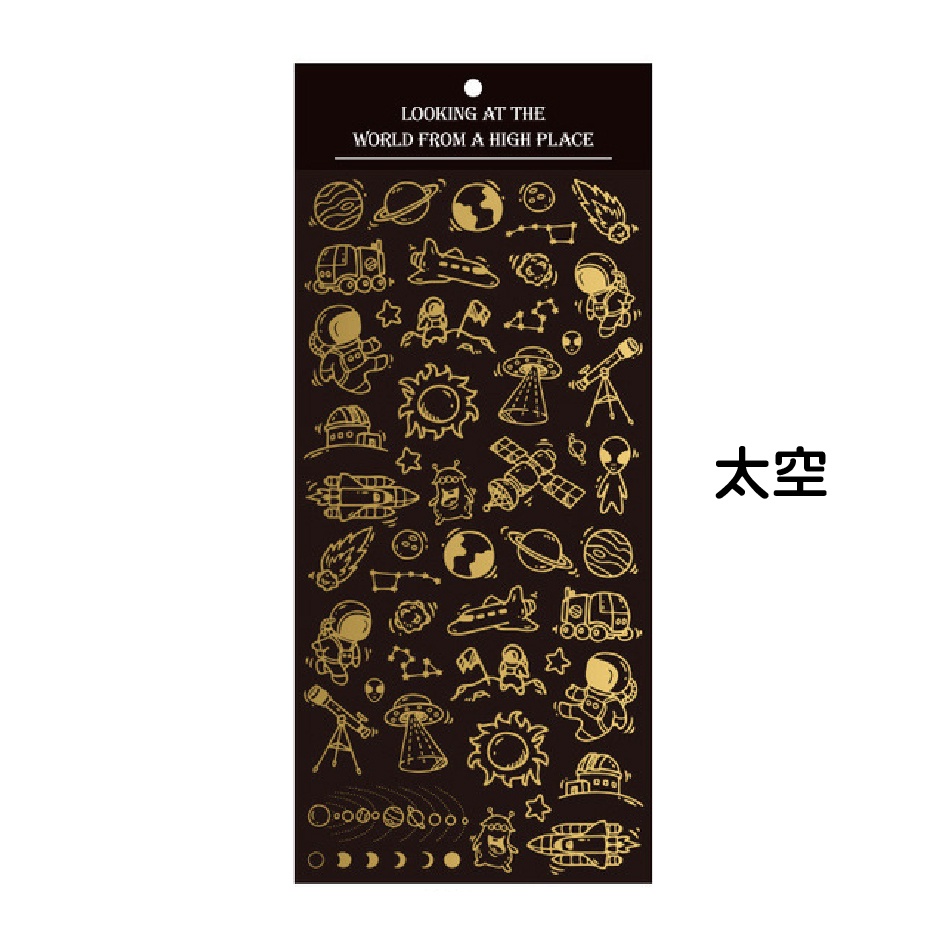 高處看視界系列燙金貼紙 雪花 太空 旅行 星星 樹葉 星球 十二星座【久大文具】1404
