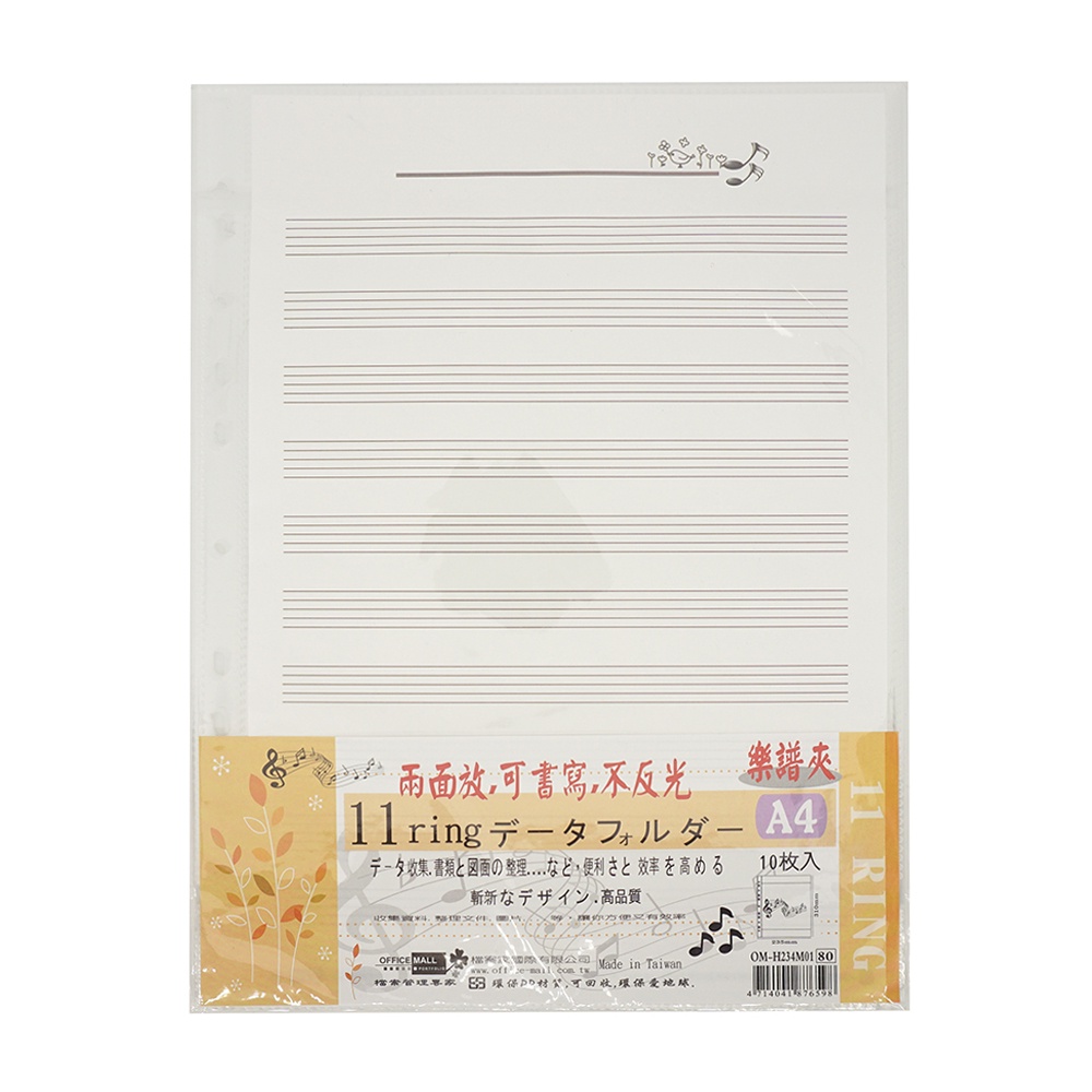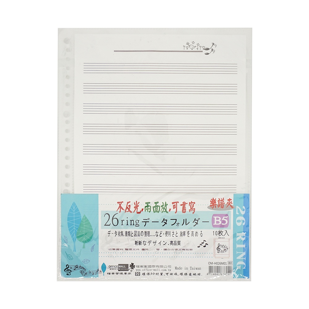 不反光樂譜夾內頁 A4-11孔/B5-26孔 樂譜資料夾 樂譜袋【久大文具】0118