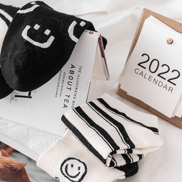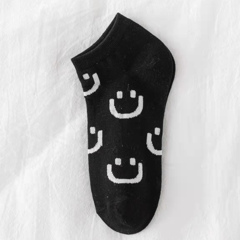 笑臉黑白色短襪 (現貨) (特價) 棉襪 襪子 踝襪 No.216【久大文具】20220926