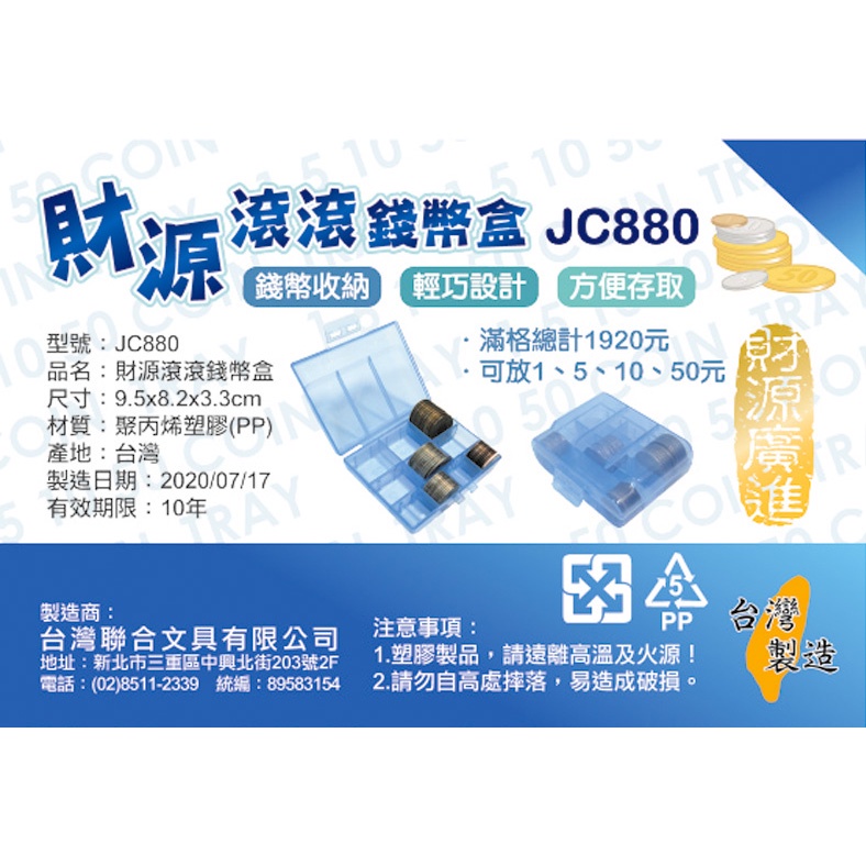 財源滾滾錢幣盒 JC880 收納盒 零錢盒 分隔盒 硬幣盒 錢盒【久大文具】0117