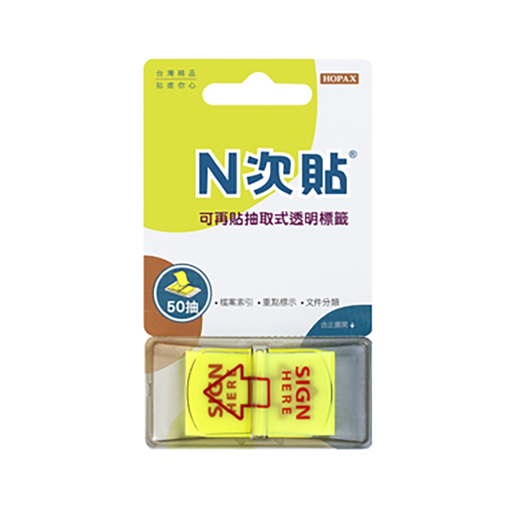 N次貼-抽取式螢光透明標籤(SIGNHERE) 66015 標籤紙 抽取式 螢光 080【久大文具】0113