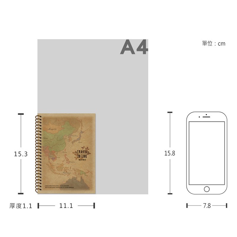 A6牛皮線圈筆記(空白)-80頁 美州 非州 南亞 東亞 筆記本 NB-11051 【久大文具】0119