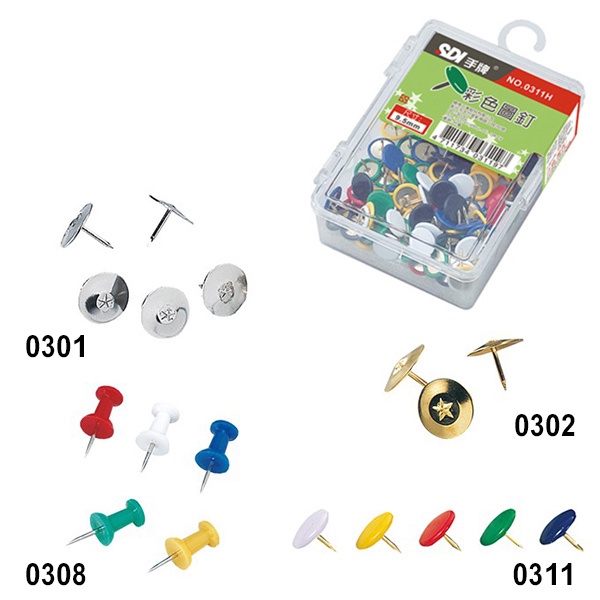 SDI 手牌 高級/金色/彩色/美式圖釘 (160粒/盒) 0301H/0302H/0308H/0311H【久大文具】