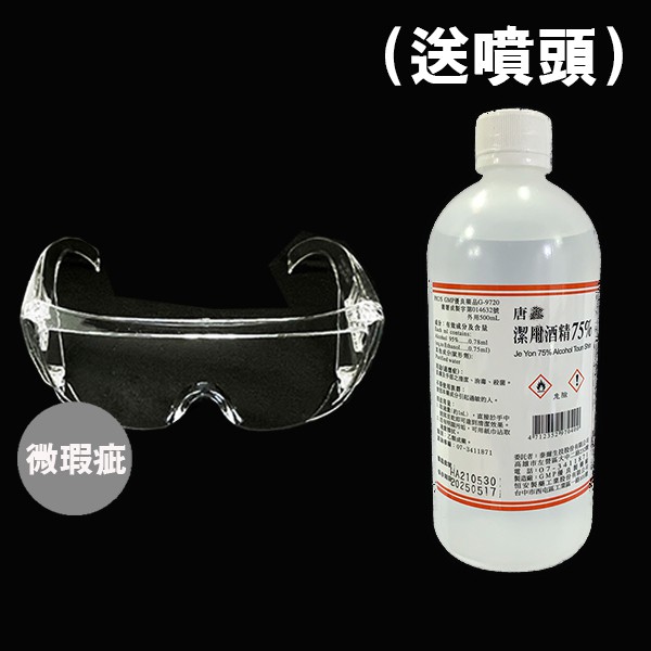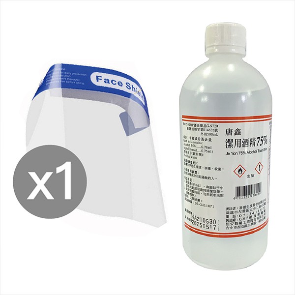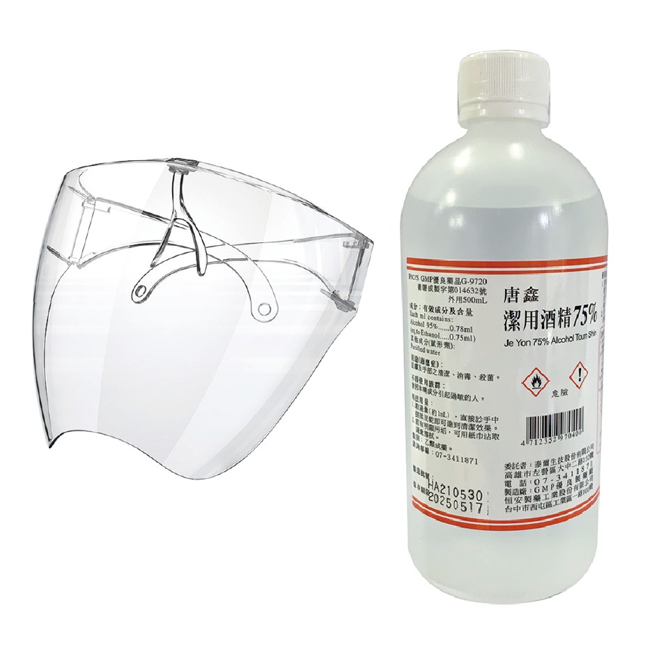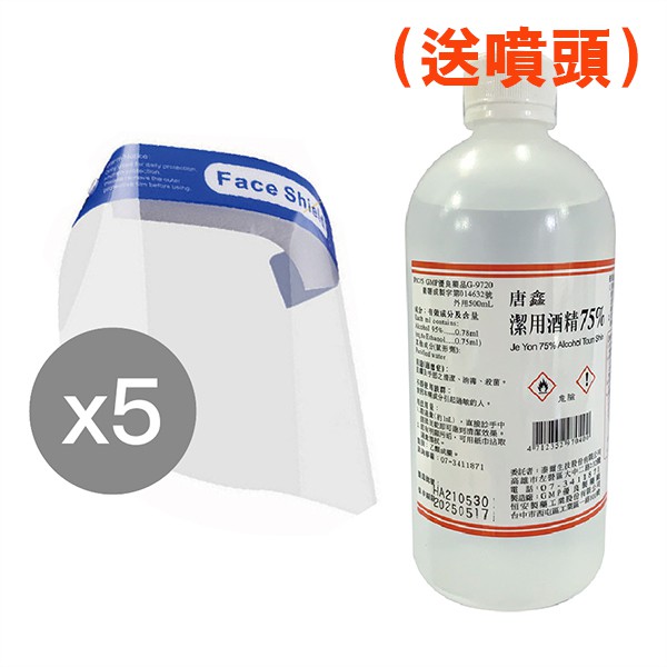 (台灣現貨) 唐鑫酒精75%(500ml) (另送噴頭) +防護面罩組合 乙類成藥【久大文具】
