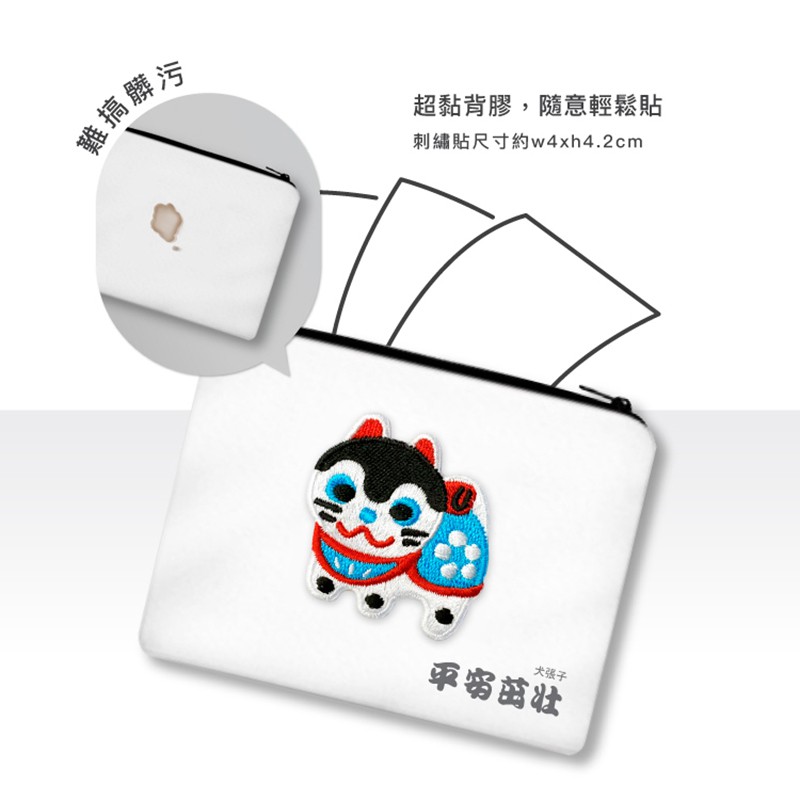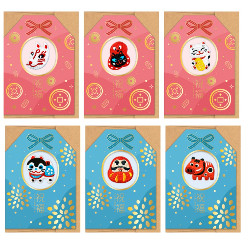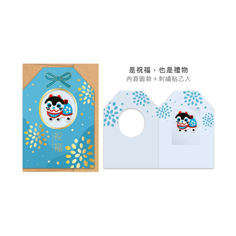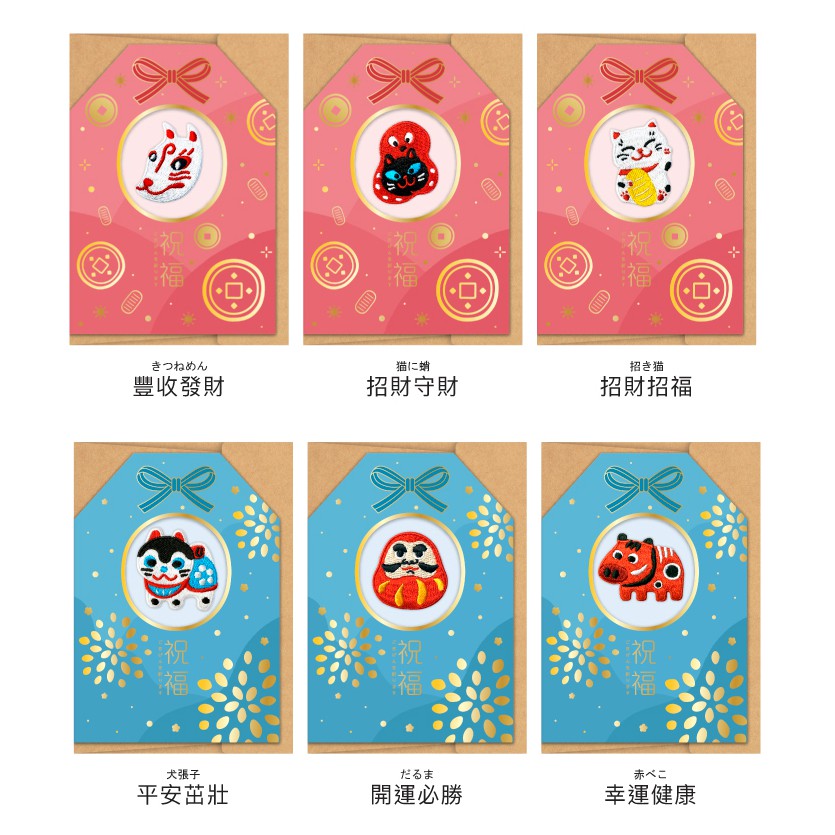 燙金刺繡貼謝卡 狐狸面具 / 招財貓 / 章魚貓 / 福神 / 犬張子 / 祈福牛牛 刺繡貼【久大文具】0145