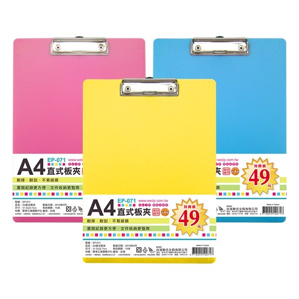 A4直式板夾 (EP-071) 文件板夾 墊板夾 留言板夾 【久大文具】0117