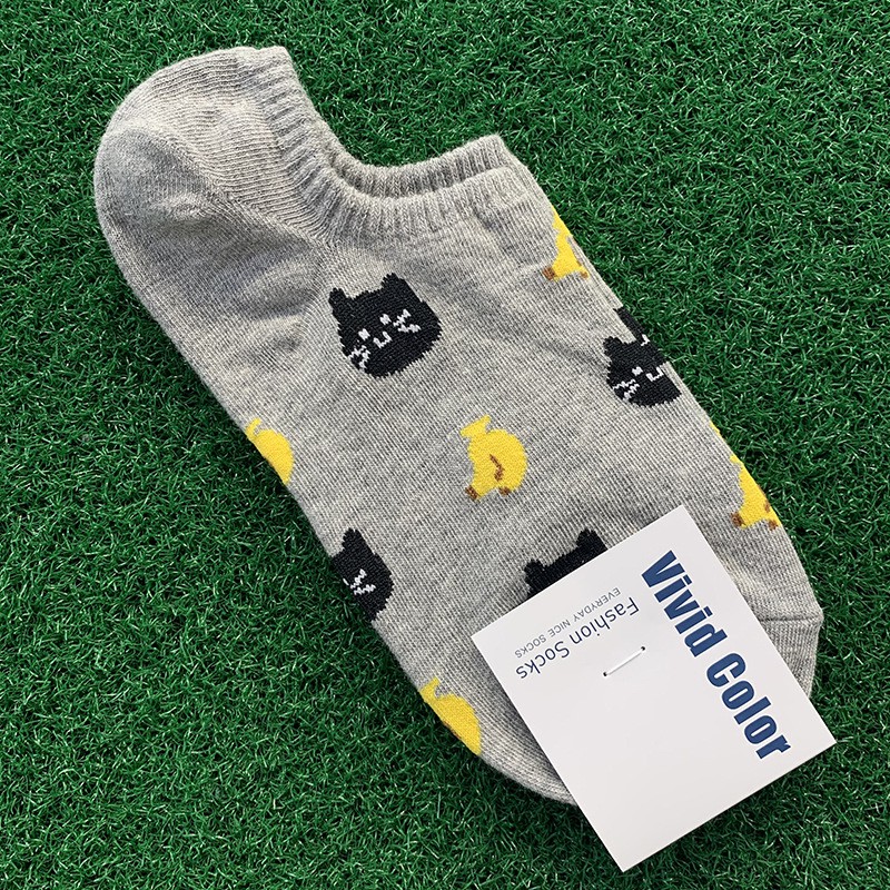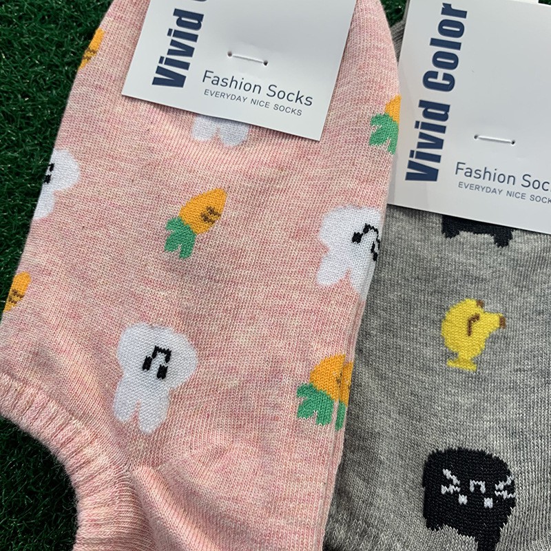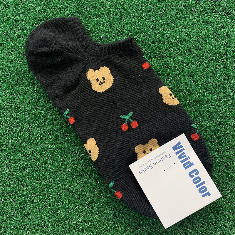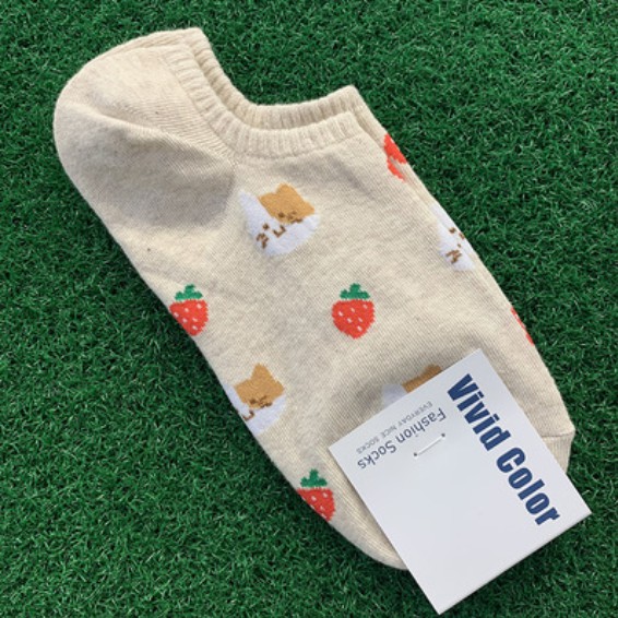 (現貨)韓國草莓小熊小貓水蜜桃不掉跟船襪 棉質女襪 動物水果小圖【久大文具】編號31