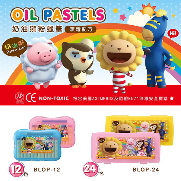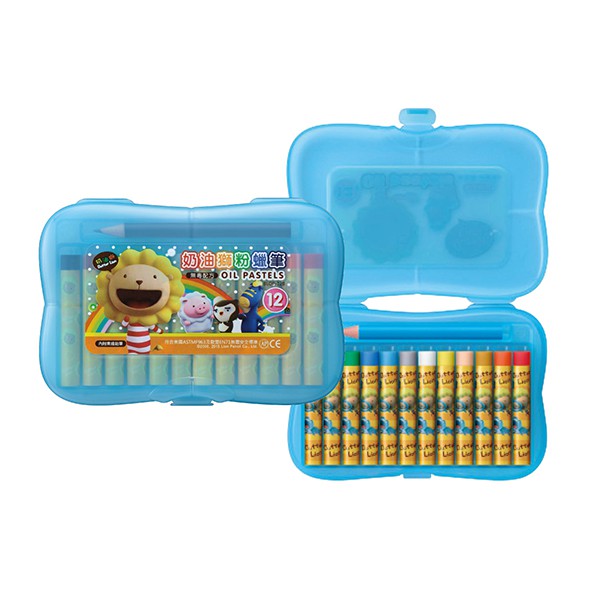 雄獅 奶油獅粉蠟(塑盒) 12色/24色/48色 附鉛筆 (BLOP-12/BLOP-24/BLOP-48)【久大文具】