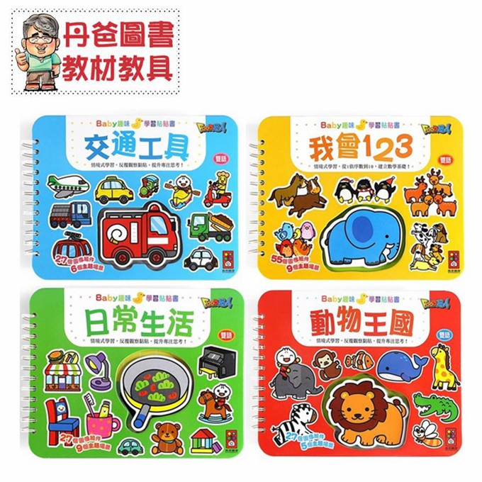 【風車】 新版 Baby趣味學習貼貼書 (日常生活/交通工具/我會123/動物王國/認識顏色/有趣形狀)