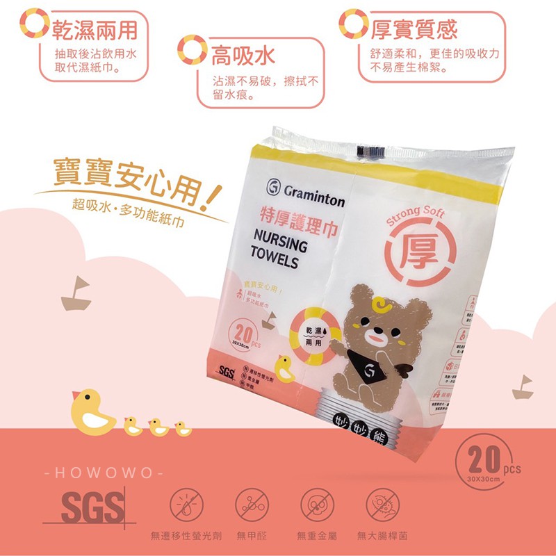 妙妙熊護理巾 20抽 特厚護理巾 特柔護理巾 無塵紙 紗布巾 拋棄式 乾濕兩用巾 餵奶巾 口水巾 乾濕巾 洗臉巾 鉅瑋