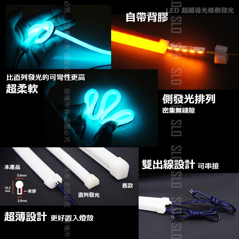 SLO【LED超細導光條 側發光】30cm 60cm LED 防水 均勻亮 單色 眉燈 燈條 導光管 導光條 機車 汽車