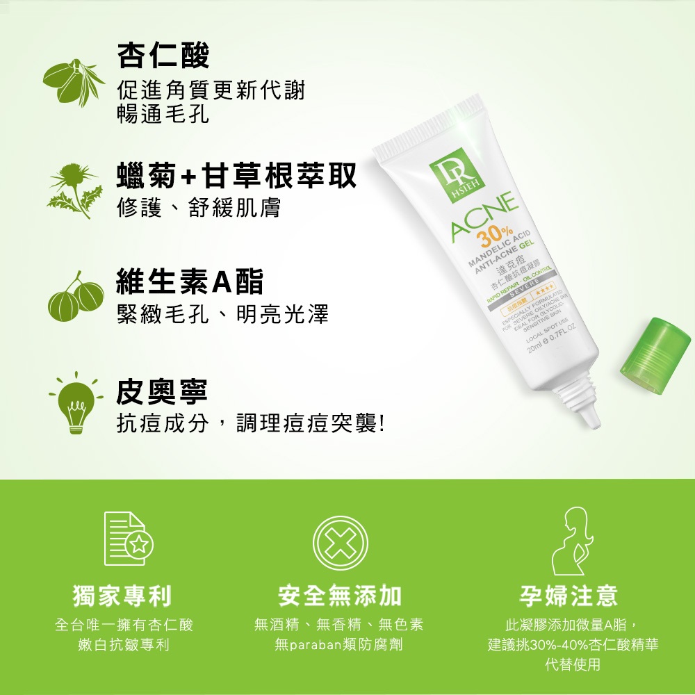 Dr.Hsieh達特醫 30%杏仁酸抗痘凝膠(達克痘)20mL 局部加強抗痘