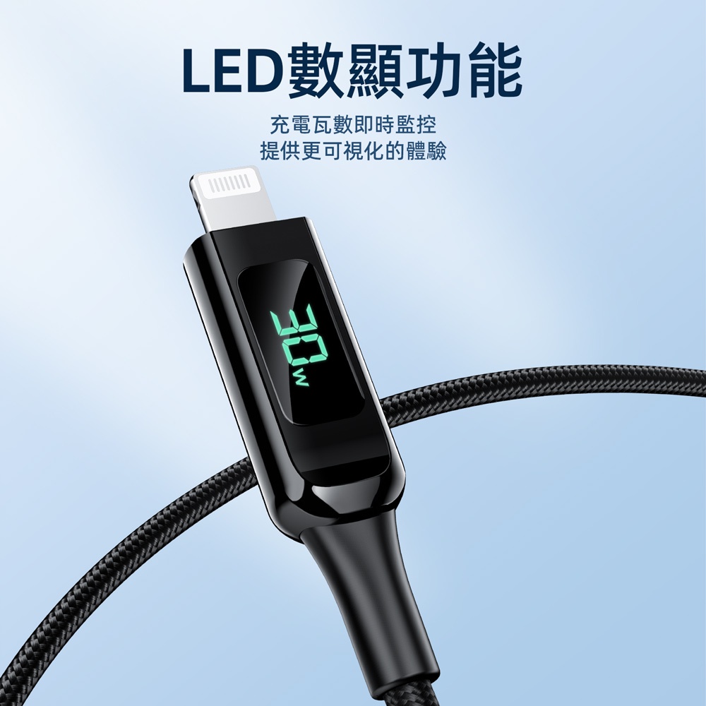 ACEFAST 鋅合金數顯編織PD充電數據線-C6-01-黑色-台灣公司現貨保固18個月