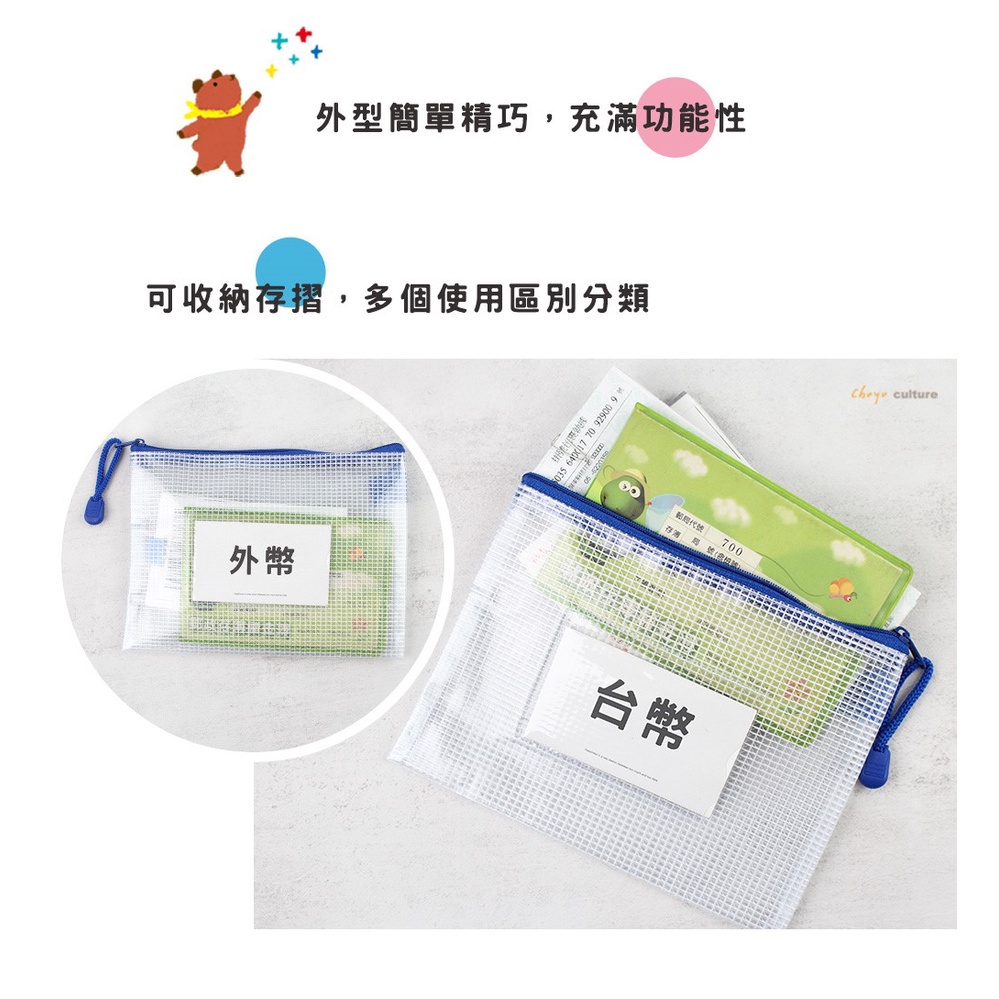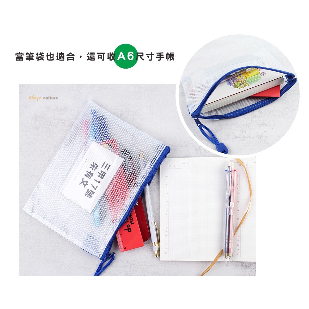 珠友 A6/50K網狀拉鏈袋(附名片袋)/網格拉鍊袋/文具收納/多功能收納袋/存摺票據3C小物收納 WA-50111
