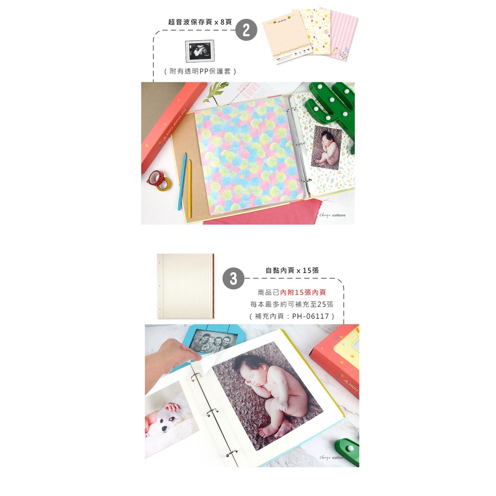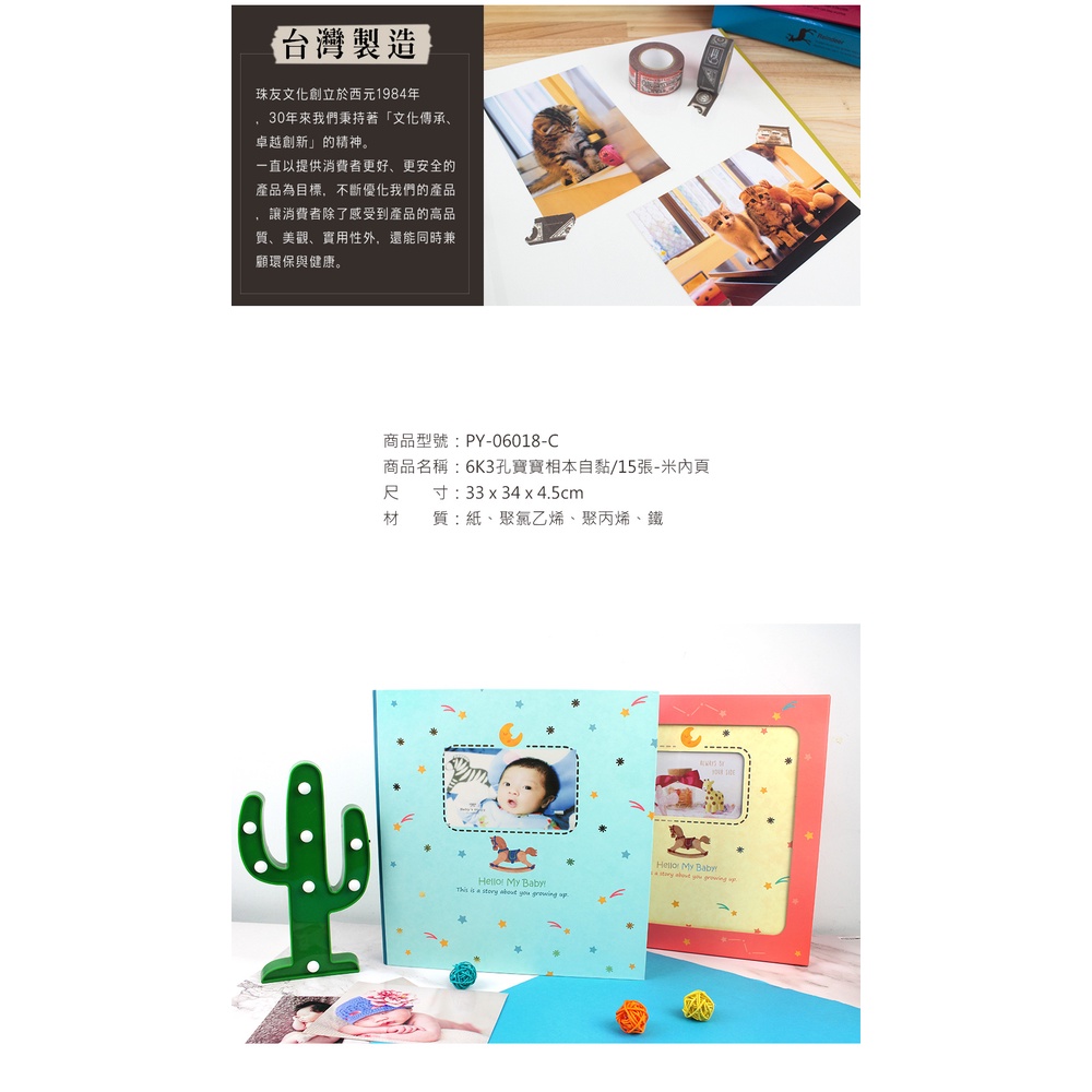 珠友 6K3孔小木馬寶寶相本/新生兒成長相簿禮盒-自黏白色內頁/15張(PY-06018-C)