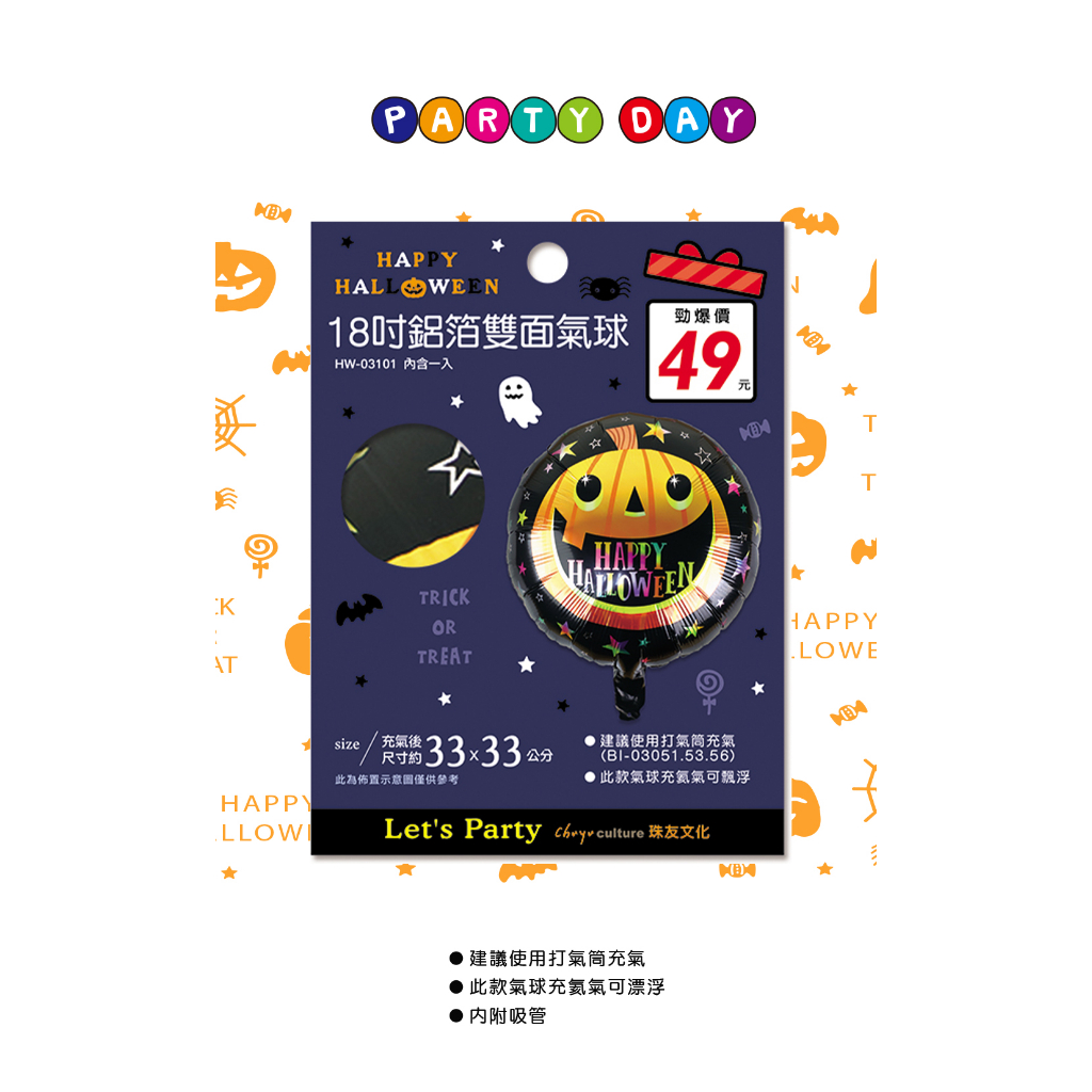 珠友 萬聖節佈置-18吋萬聖鋁箔雙面氣球/場景裝飾/派對佈置/活動佈置/錫箔氣球/Halloween HW-03101