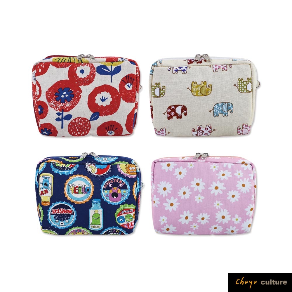 珠友【限定版】花布分類收納包/充電線收納包/耳機包/傳輸線整理袋/零錢包/雙向拉鍊包/化妝包 SC-10090