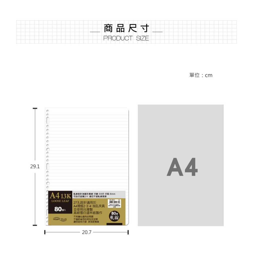 珠友 A4/13K 27孔活頁紙(空白軋線/隱形橫線)-80磅/80張/活頁筆記本補充內頁 NB-30033