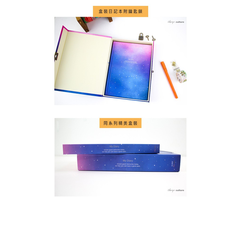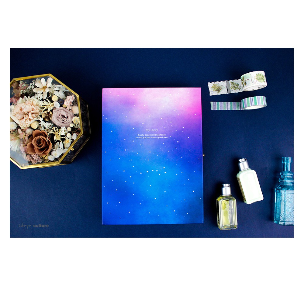 珠友 A5/25K日記/手帳手札創作/記錄/筆記本/盒裝/附鑰匙-靜謐星空 ( DI-25037)