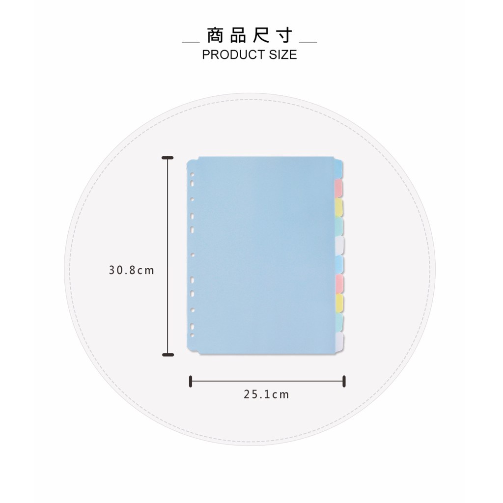 珠友 12K11孔資料袋用PP分段色卡-10段/A4資料袋用/索引分類/檔案本分隔卡 WA-12012