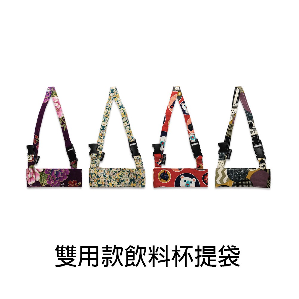 珠友 台灣花布雙用款飲料杯提袋/減塑行動環保杯套/手提飲料袋/雙杯 PB-80025