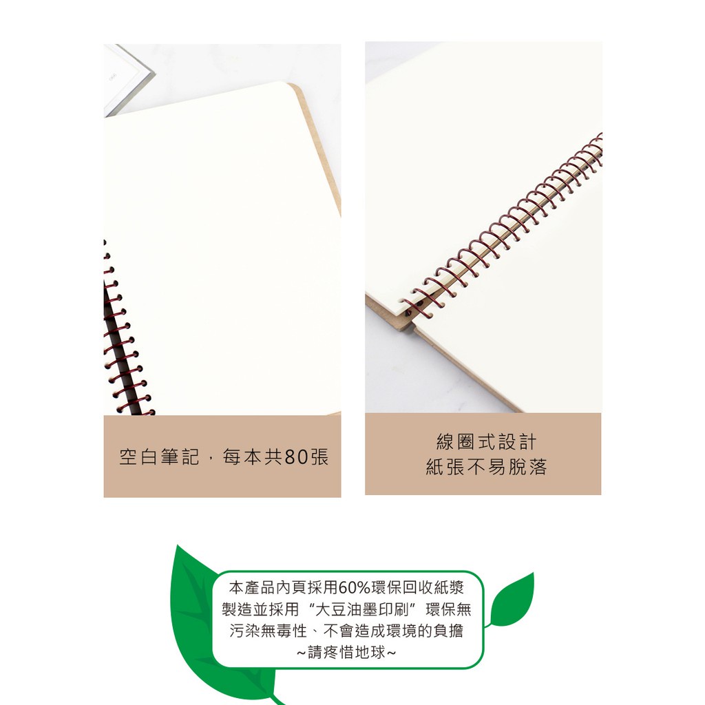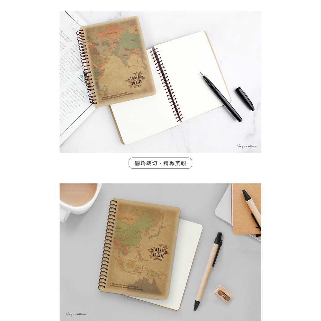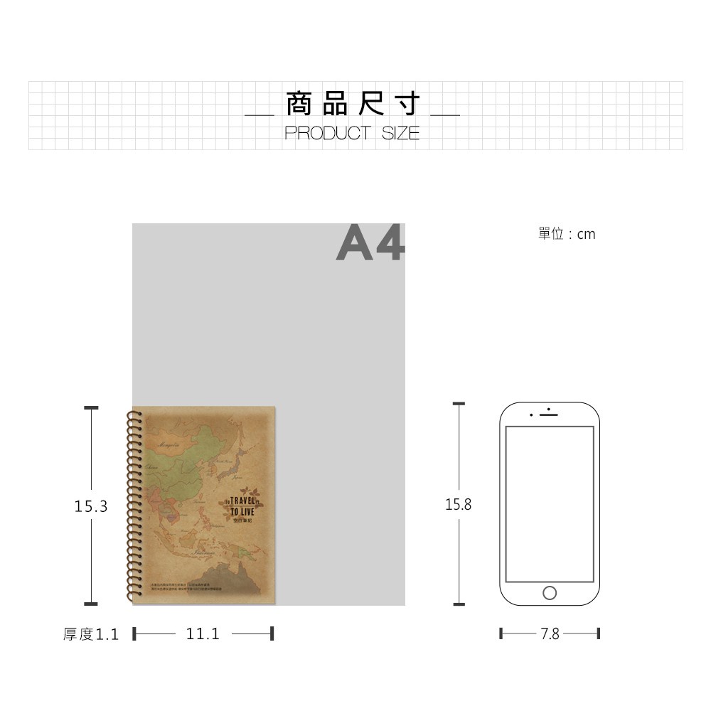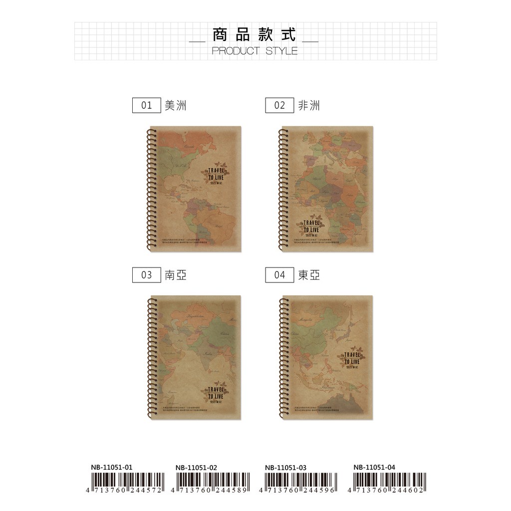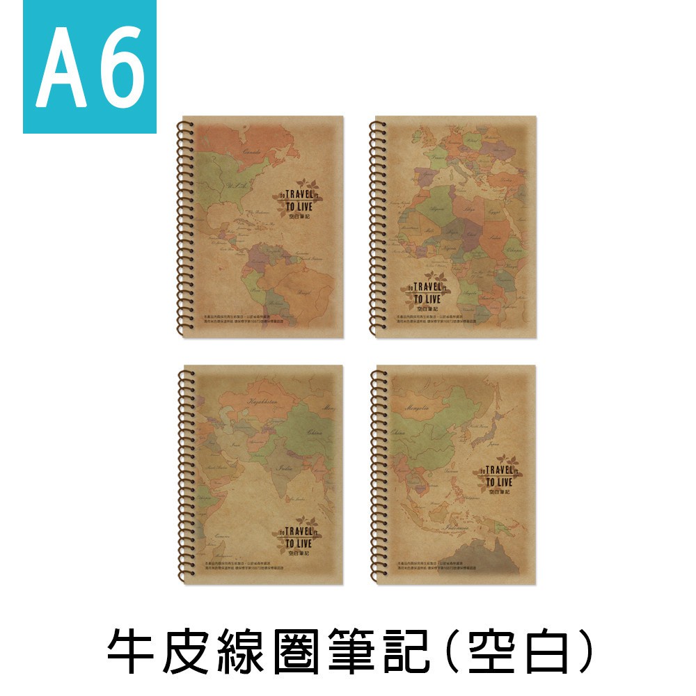 珠友 A6/50K牛皮線圈筆記(空白)-80張/再生紙筆記本/加厚記事本/厚牛皮紙板封面/地圖紋 NB-11051