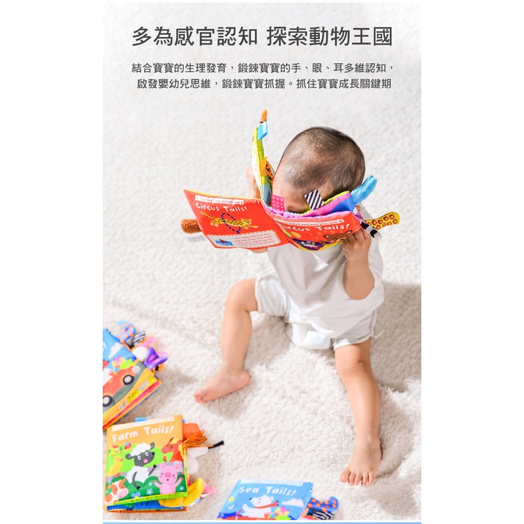 動物尾巴布書 認知啟蒙響紙標籤學習書 寶寶布書 雪倫小舖