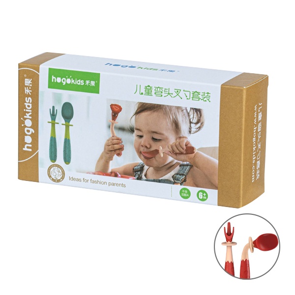 彎彎餐具組 贈收納盒 學習餐具組 Hogo禾果可彎曲湯匙叉子可彎曲學習餐具 - 雪倫小舖