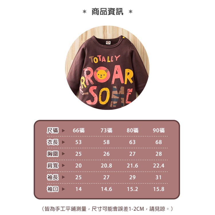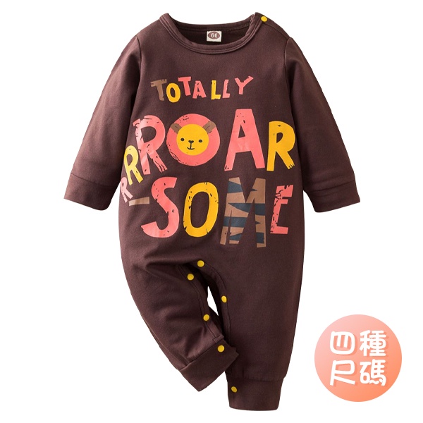 寶寶純棉長袖連身衣 新生兒包屁衣 咖啡獅子童衣 雪倫小舖