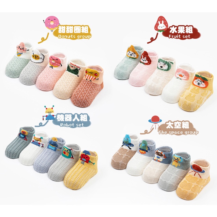 童襪 嬰兒襪 5雙入 春夏薄棉透氣孔造型船襪 襪子 - 雪倫小舖