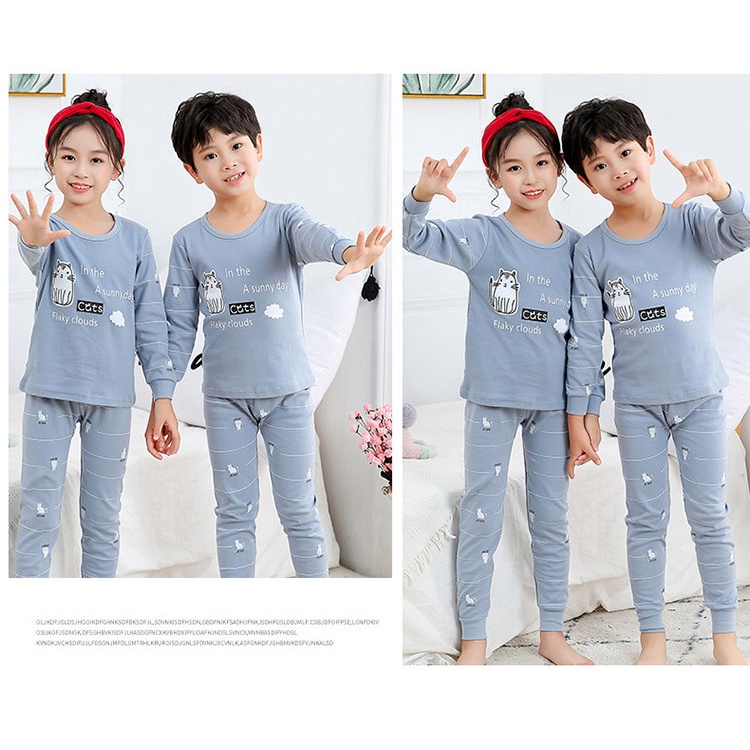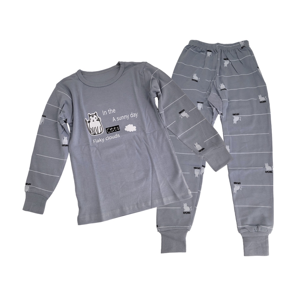 純棉長袖上衣+褲子套裝 外出服 居家服 兒童睡衣-銀灰貓 雪倫小舖