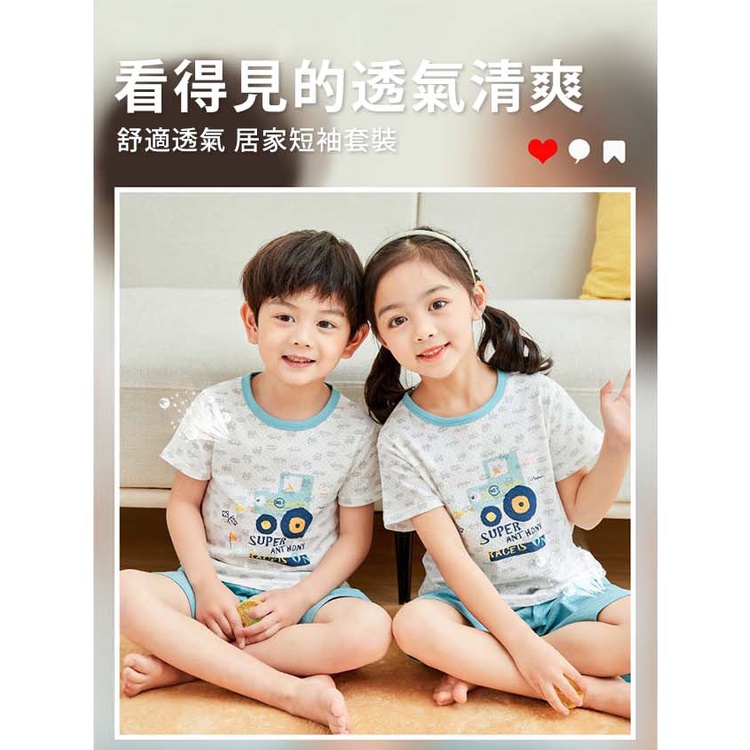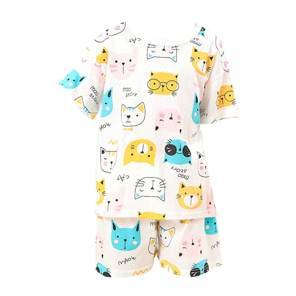 春夏童裝 透氣短袖上衣 褲子套裝 外出服 居家服 兒童睡衣 【貓咪頭(寬肩版)】 雪倫小舖