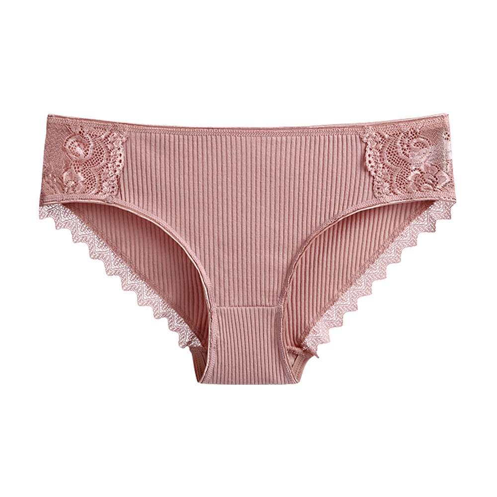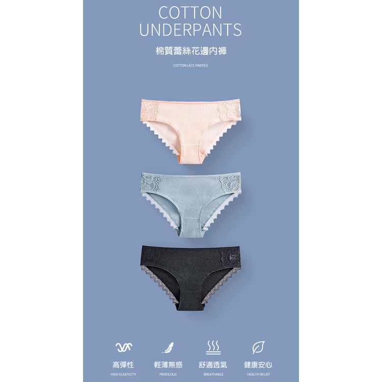 日系螺紋棉質內褲 親膚透氣三角褲 花邊蕾絲內褲 - 雪倫小舖