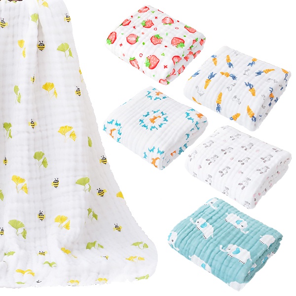 澎澎紗純棉6層紗布浴巾蓋毯 嬰兒多功能水洗印花紗布抱被 雪倫小舖