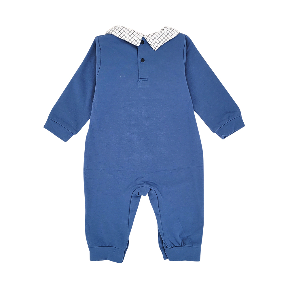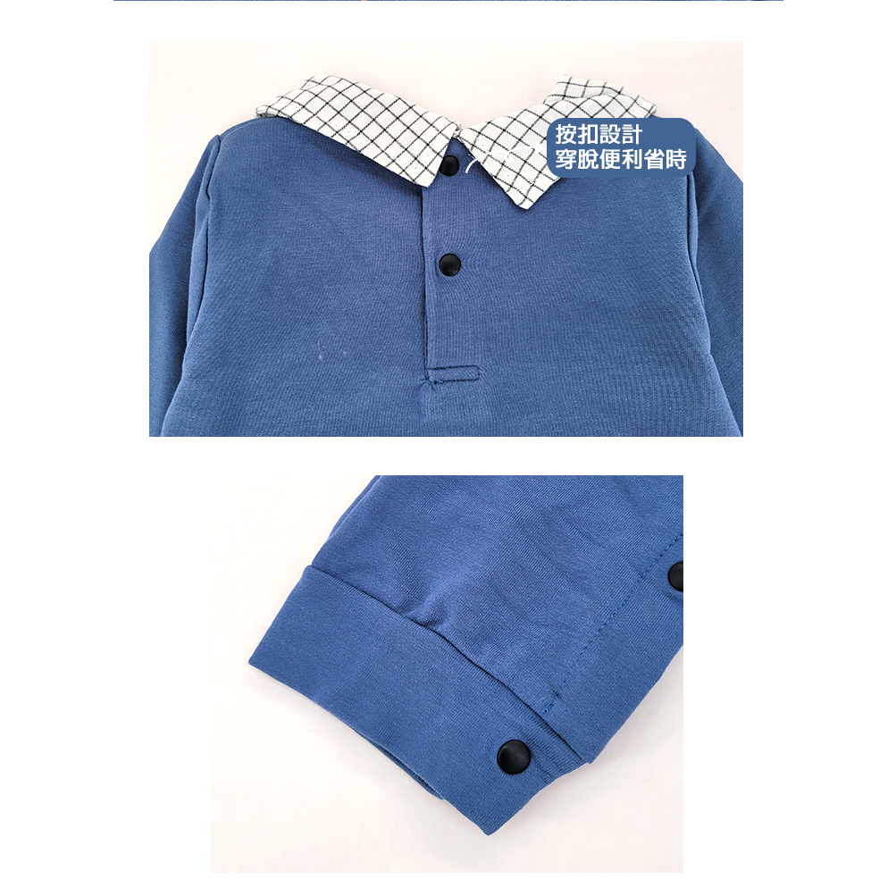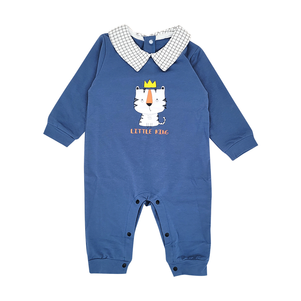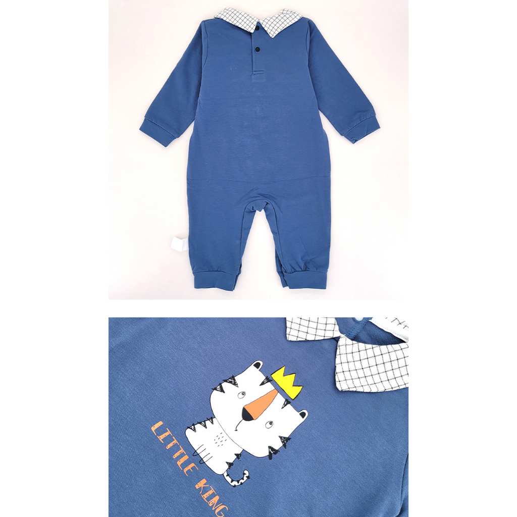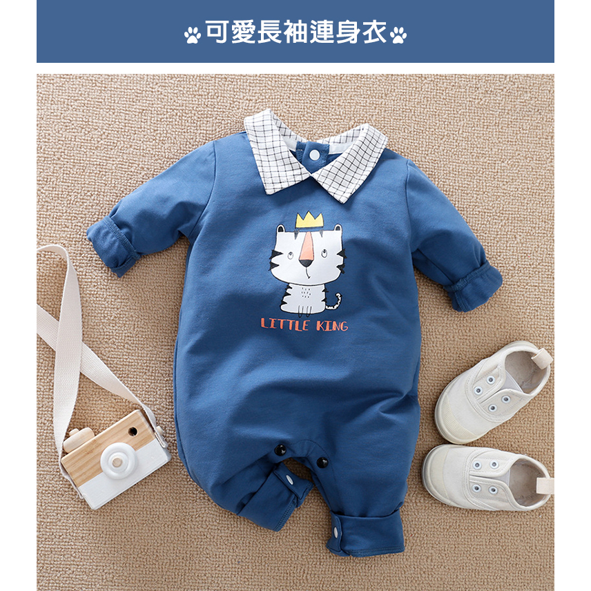 寶寶衣 純棉長袖連身衣 新生兒包屁衣 湖藍皇冠貓 童衣-雪倫小舖